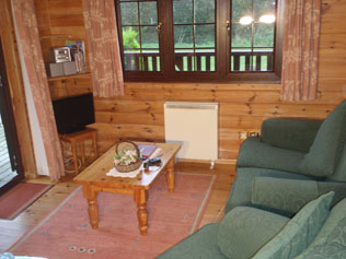 The front door leads into a perfect smaller version of our larger lodges with comfortable seating TV freeview DVD and music system. A dining table and chairs with fitted kitchen including a dishwasher electric cooker microwave and fridge with ice box. A door off the kitchen leads into an airy double bedroom, with a chair which in turn pulls out to be a child’s bed, fitted wardrobe, and dressing table, a door leads into a shower room.